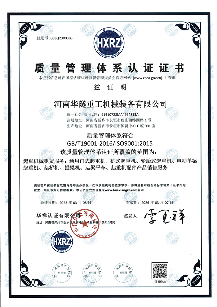 質量管理體系認證證書